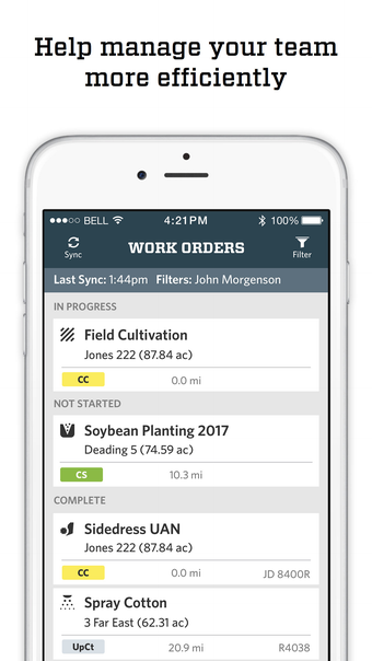 ด้วย Traction Enterprise ผู้ปฏิบัติงานฟาร์มสามารถรับคำสั่งงานผ่านมือถือและเข้าถึงคำสั่งงานในสนามที่กำหนดได้ พวกเขายังสามารถเพิ่มหมายเหตุและรูปภาพในคำสั่งงานได้ รวมถึงยืนยันปริมาณผลิตภัณฑ์ที่ใช้ ซึ่งช่วยให้การสื่อสารและการทำงานร่วมกันระหว่างผู้จัดการฟาร์มและผู้ปฏิบัติงานเกิดขึ้นได้อย่างมีประสิทธิภาพและแม่นยำ